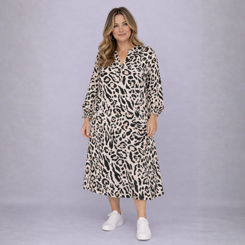 Leopard Print Sleeveless V Neck maxi Dress with side Pockets