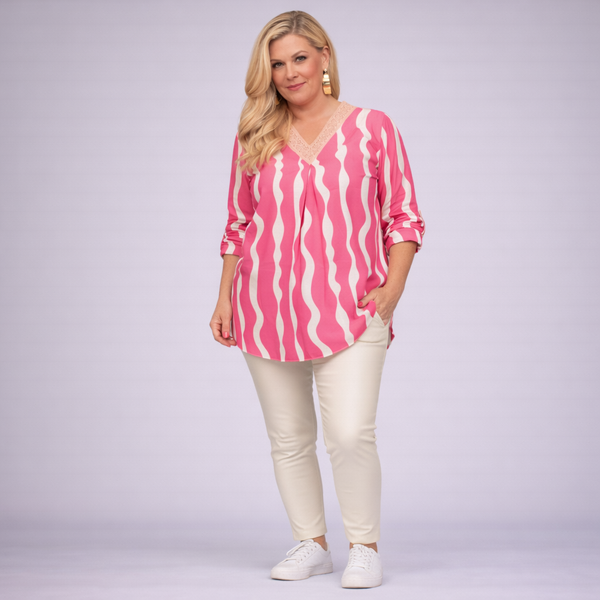 Loose Fitting Lace Panel Blouse with Frilled Sleeves