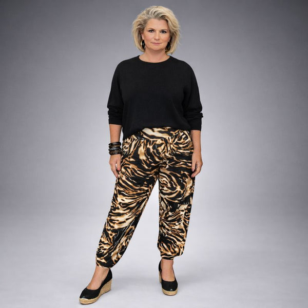 Brown & Black Bold Tiger Tie Dye Harem Pants