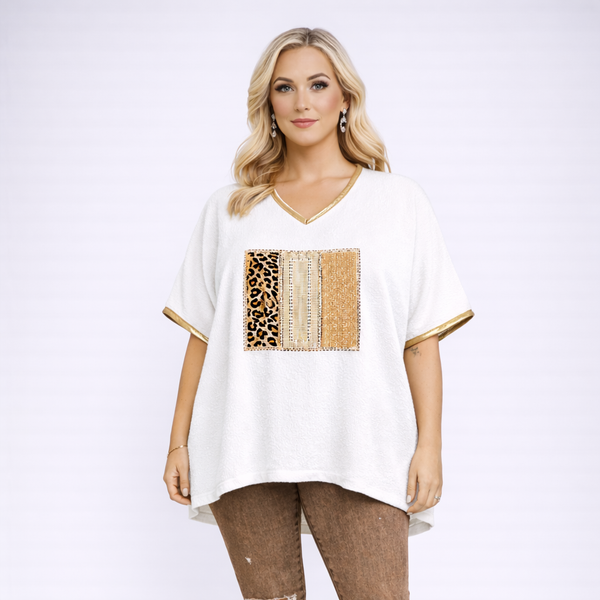 Grey & Silver Short Sleeve Hanky Hem Swing Top