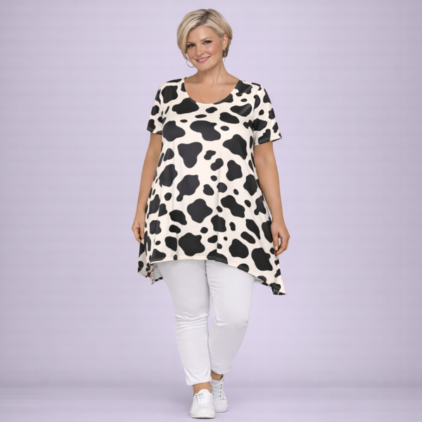 Bold Animal Print Batwing Dipped Hem Blouse