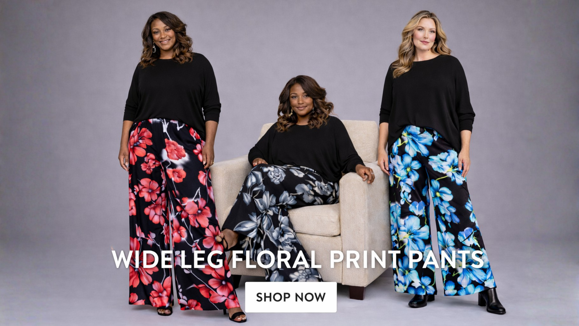 Large Flower Print Wide Leg High Rise Palazzo Trousers