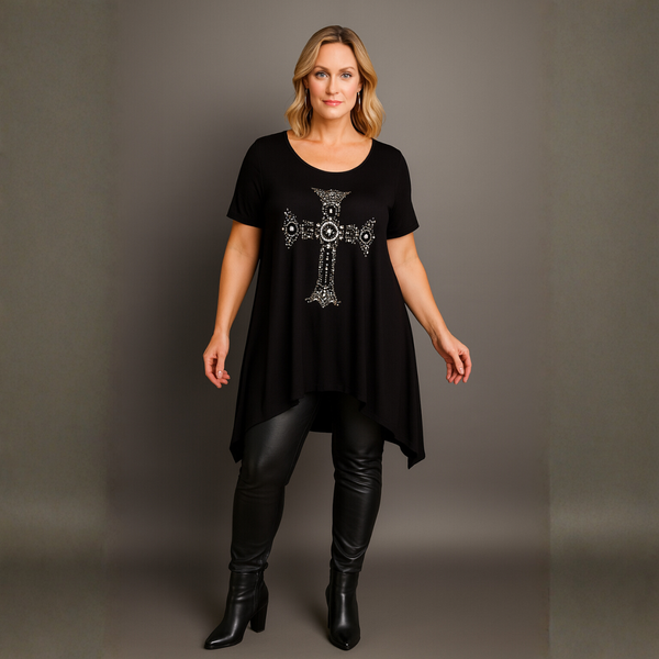 Rag Dipped Hem Long Sleeve Top with Fingerprint Design