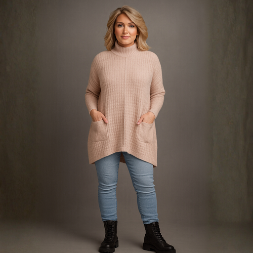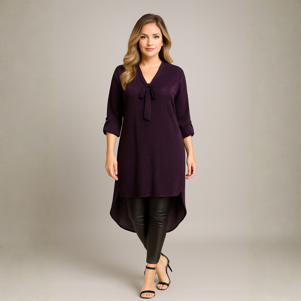 Long Dipped Hem Pocket Top with Satin Hem & Neck Scarf