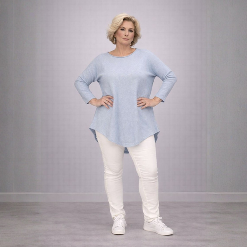 Dipped Hem Tie Neck Loose Fitting Blouse