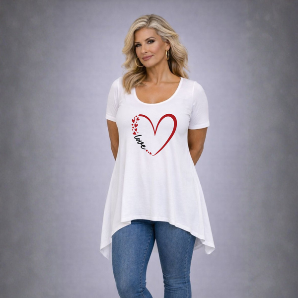 Love Heart Hanky Hem Short Sleeve Swing Top