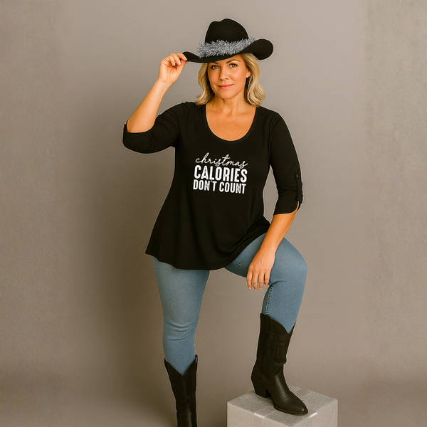 Abstract V‑Neck Long Dipped Hem Top with Button Sleeves