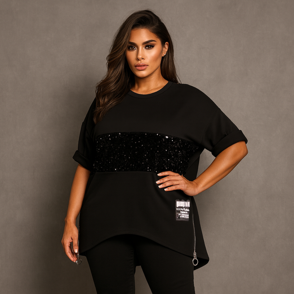 Sparkly Sequin Loose Fitted Dipped Hem Dress