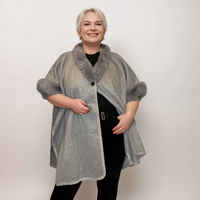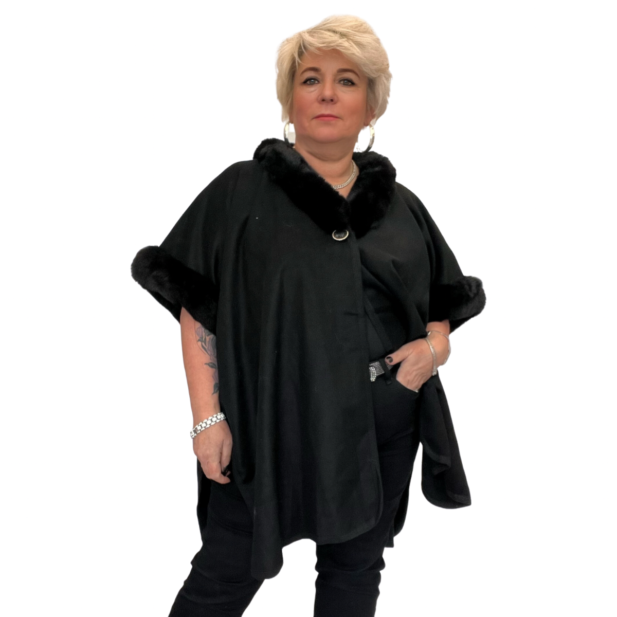 Experience ultimate warmth and style with our FAUX WOOL FLEECE PONCHO / CAPE featuring a luxurious FAUX FUR COLLAR. This oversized poncho / cape has a convenient BUTTON FASTENING and a comfortably loose fit. The SOFT FAUX FUR COLLAR adds a touch of elegance and sophistication. Available in ONE SIZE, it fits all body types, making it the perfect addition to your wardrobe. Don't miss out on the chance to rock your curves in this must-have jacket from Rockthosecurves!