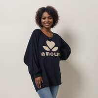 V NECK LONG SLEEVE BATWING TOP WITH FLUFFY AMOUR LOGO