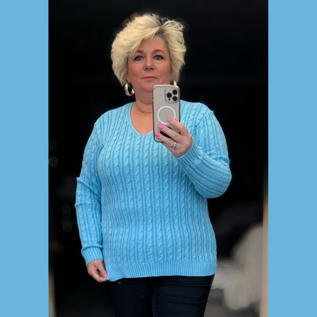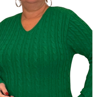 V NECK CABLE KNIT LONG SLEEVE JUMPER