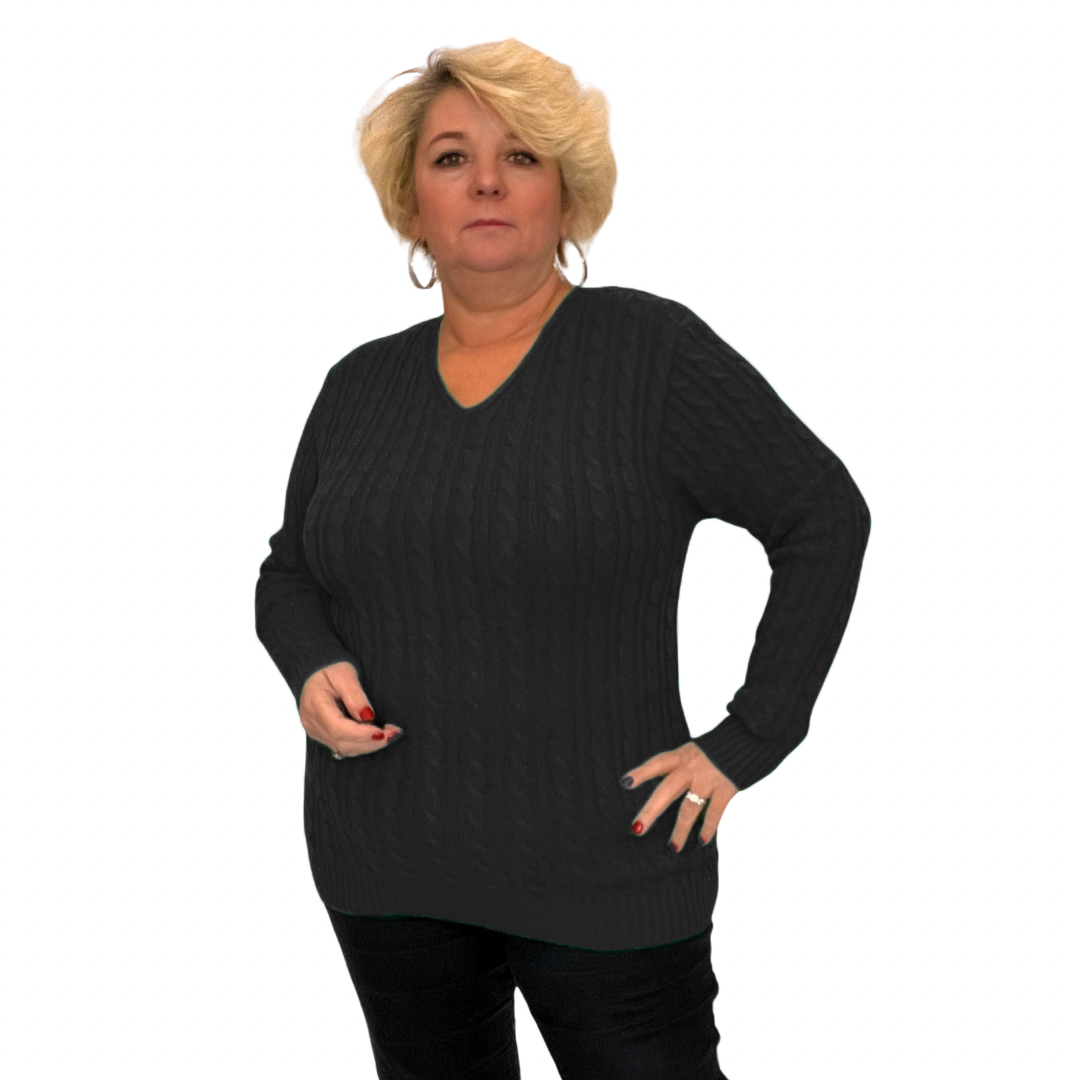 V NECK CABLE KNIT LONG SLEEVE JUMPERMaterial: KNITTED