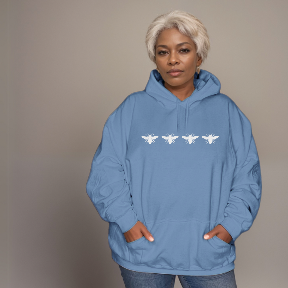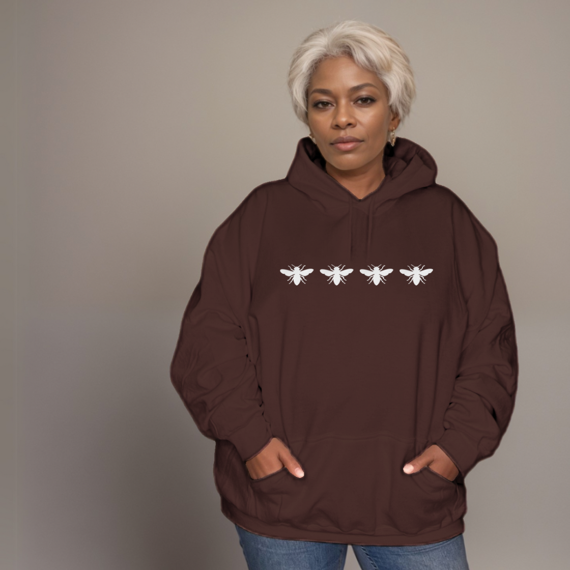 Wrap yourself in hive-inspired comfort with the RockThoseCurves Plus-Size “4 Bees” Hoodie. Crafted from ultra-soft, premium 100 % cotton, this hoodie features a cluster of four white bees on the chest and a cozy hood for extra warmth.