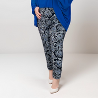 Indulge in the vibrancy and versatility of ROCKTHOSECURVES BLACK BLUE PAISLEY HIGH RISE STRETCHY LEGGINGS. These premium, UK-made leggings feature a striking paisley print and elasticated waist for ultimate comfort. Available in plus sizes and proudly offered by Rockthosecurves.