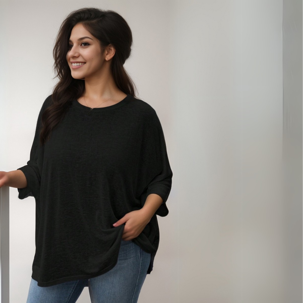 Unleash your inner fashion icon with our bold BLACK CAP SLEEVE BATWING T-SHIRT. Designed with effortless SHORT TURN UP BATWING SLEEVES and a flattering LOOSE FIT, this top is the must-have addition to your wardrobe. From ROCKTHOSECURVES, it exudes style and versatility, making it perfect for any occasion. Don't miss out on the amazing length and comfort this T-SHIRT offers!
