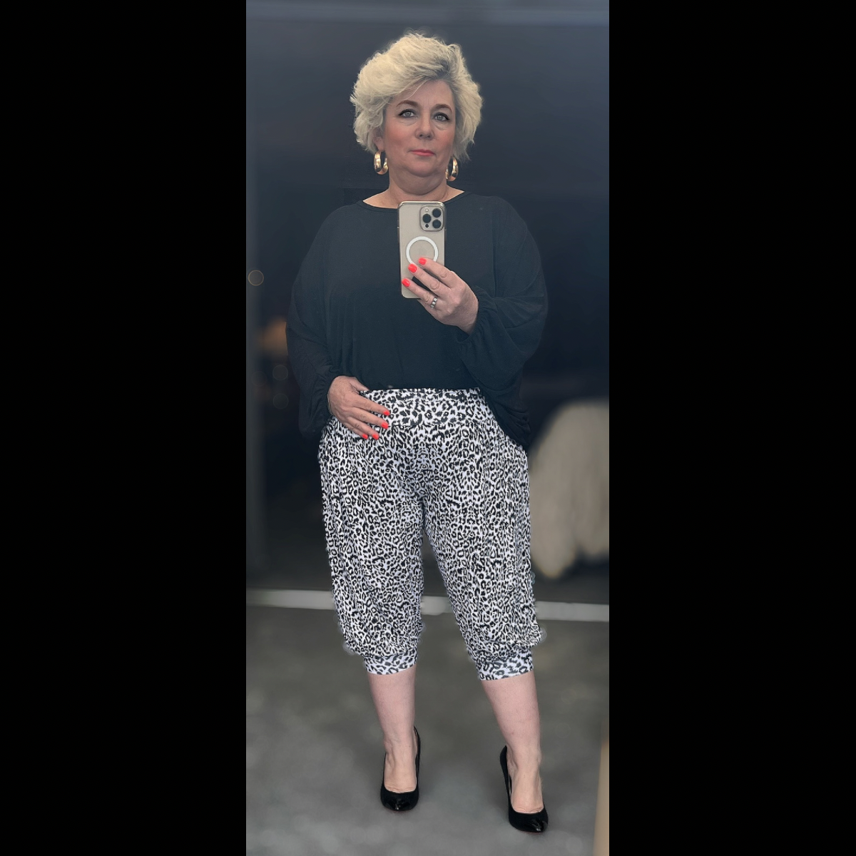 LEOPARD JERSEY 3/4 LENGTH LOOSE FITTING ALI BABA PANTS / SHORTS