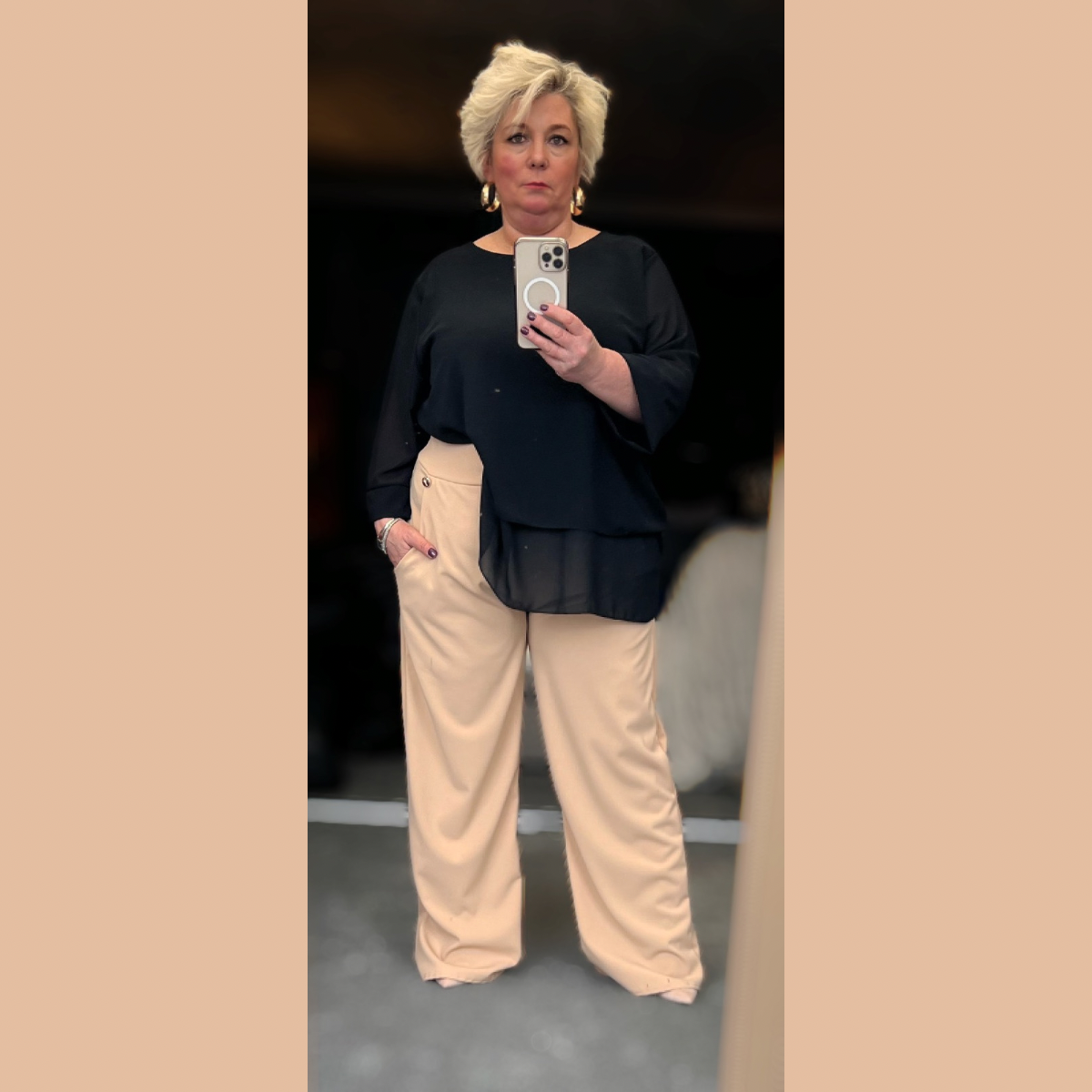 Introducing our Wide Leg Trousers with Feature Button Pockets - the must-have addition to your wardrobe! Made in the UK with 95% polyester and 5% elastane thick crepe material, this item boasts a classic high waist, elastic waistband, and flat front for a comfortable and flattering fit. Complete with side pockets and feature silver buttons, these trousers are perfect for any occasion. With a wide leg length of 42.5 inches from top of waist to bottom of hem, these trousers will make you feel confident and stylish. Order now and receive your dispatch in just 3-5 working days. Plus size available. Don't miss out on this amazing piece from Rockthosecurves!