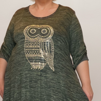 BUTTON SLEEVE SWING TOP WITH STUDDED OWL