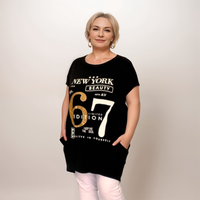 Unleash your style with this must-have New York 67 Long Dipped Hem Top. Featuring cap sleeves, a round neck, long length dipped hem, and side pockets, this plus size t-shirt is the perfect blend of fashion and function. Elevate your look and add a touch of utility with this versatile plus size top!