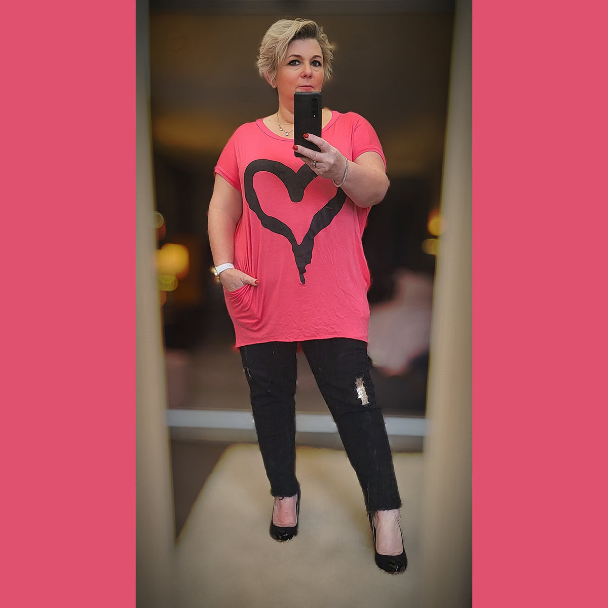 • ❤️ Statement heart print (front & back) – Bold, eye-catching, and fun