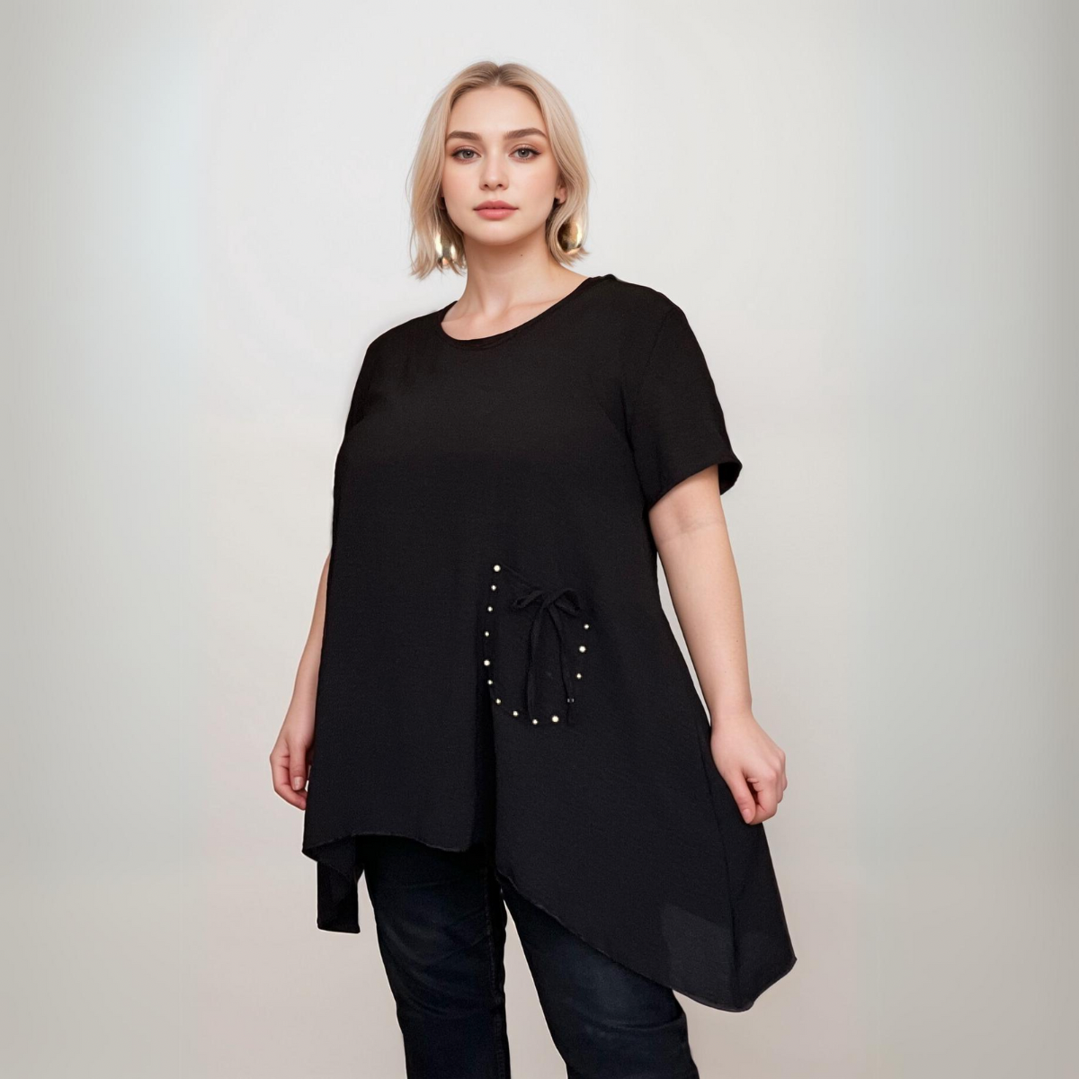 ROCKTHOSECURVES HANKY HEM BLOUSE WITH PEARL BEADED FRONT POCKET