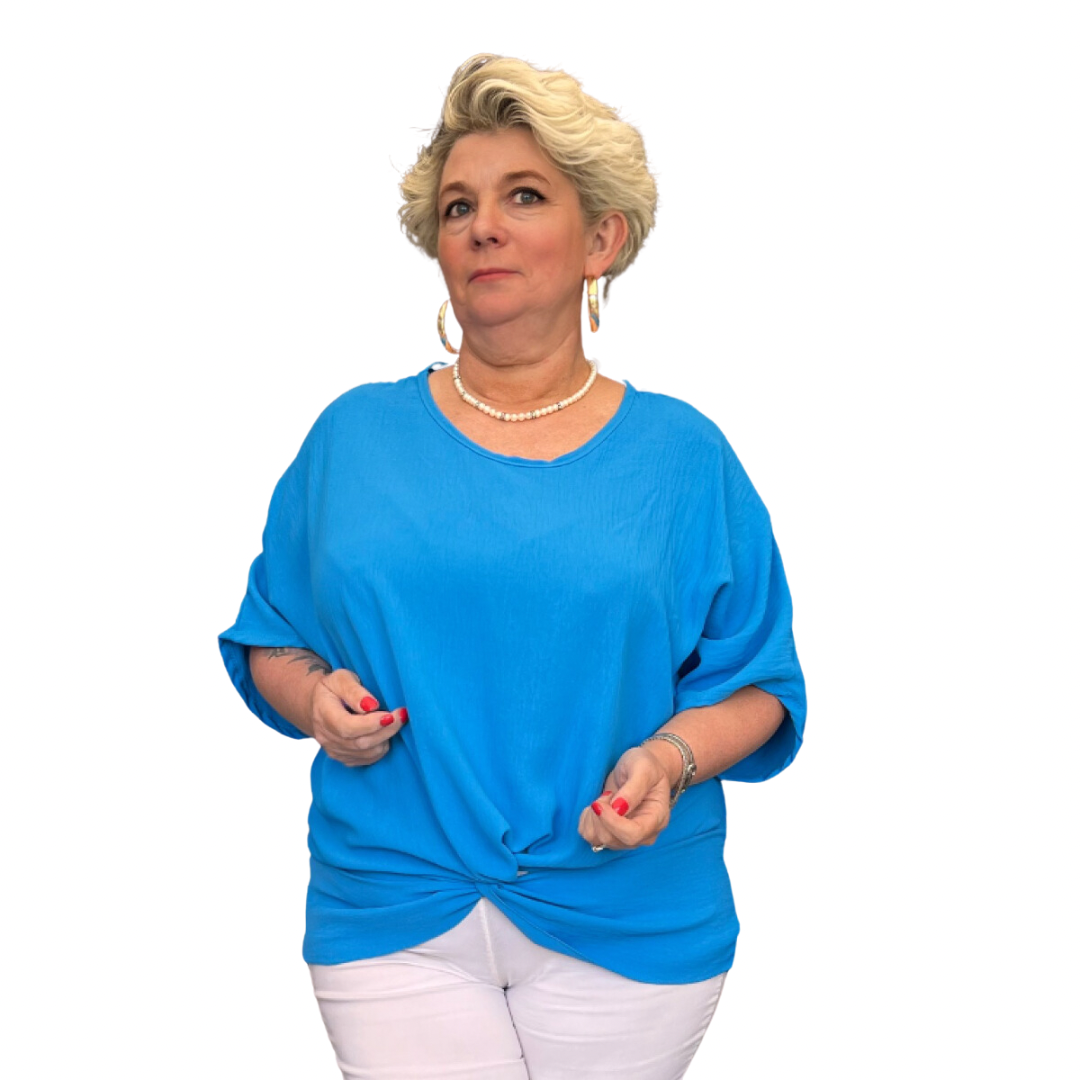 ROCKTHOSECURVES KNOT FRONT HEM 1/2 SLEEVE BATWING BLOUSE / TOP