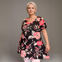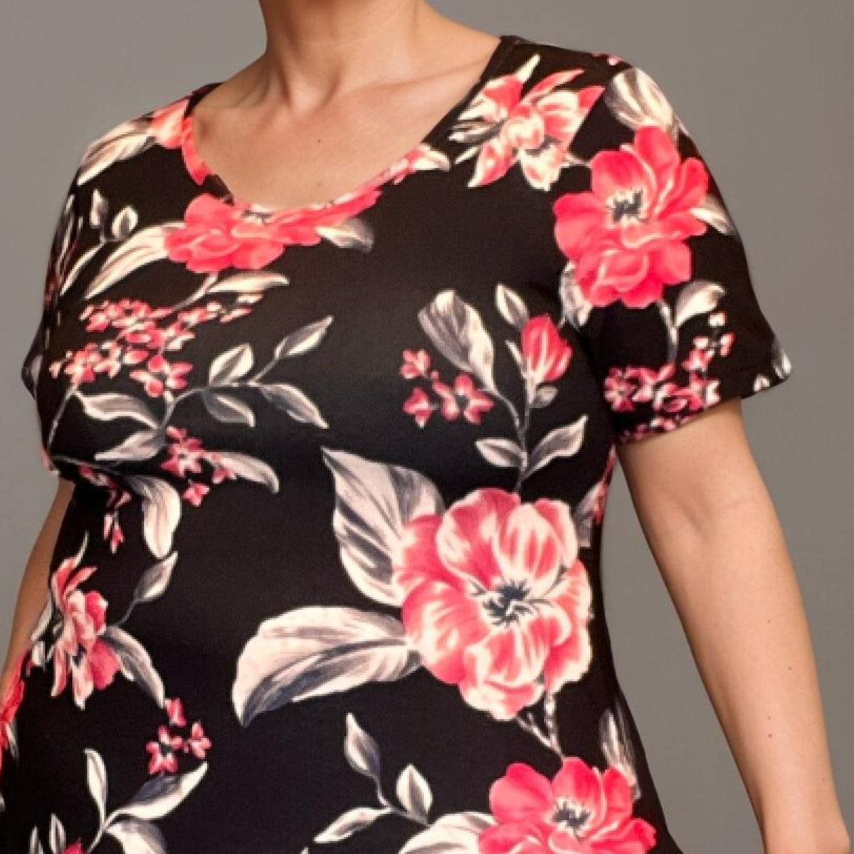 ROCKTHOSECURVES BLACK RED FLORAL SHORT SLEEVE SWING TOP