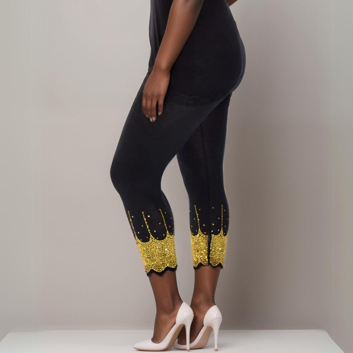 ROCKTHOSECURVES 3/4 LENGTH BEADED SCALLOP HEM LEGGINGS