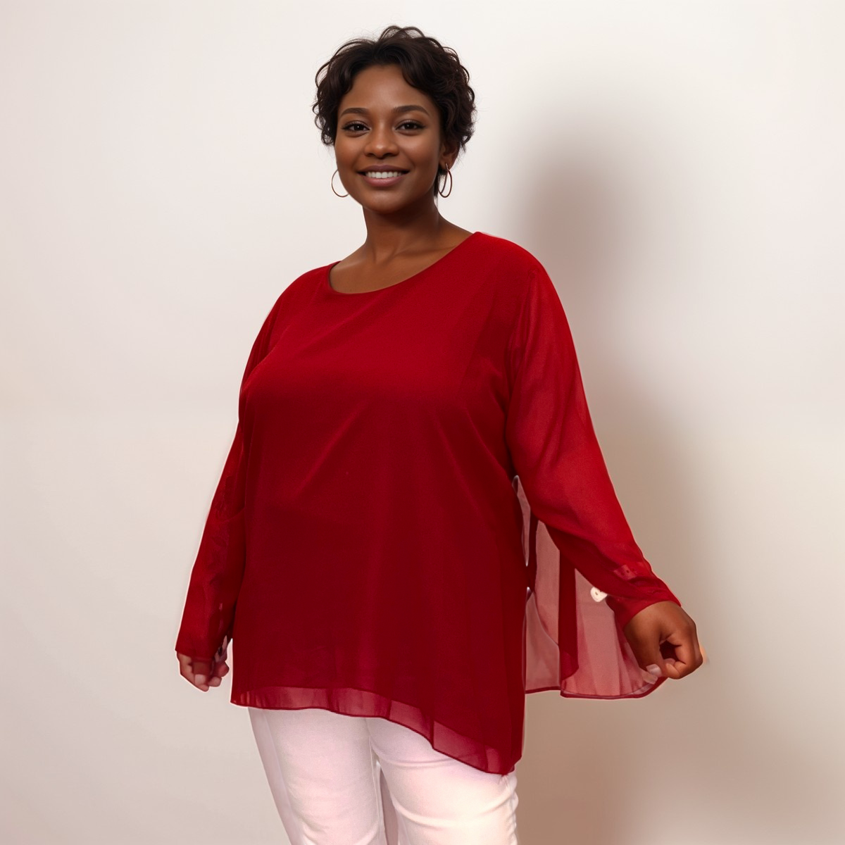 Experience elegance and comfort with our CHIFFON LINED BLOUSE, featuring beautifully fluted sleeves and a lined body. Perfect for any occasion, the delicate chiffon material and perfect length make this blouse a must-have from Rockthosecurves.