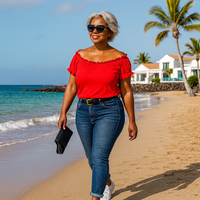 Make a statement in the RockThoseCurves Plus-Size Bardot Top—a longline, off-shoulder silhouette designed to celebrate every curve. Crafted from soft stretch-blend fabric, it features: