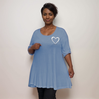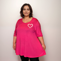 Celebrate fashion with our SWING TOP WITH HEART MOTIF! Featuring a 1/2 sleeve, button fastening, and an A-line/swing style, this top is sure to become a staple in your wardrobe. Its loose fitting and great length make it perfect for any occasion. And with its original design exclusively from ROCKTHOSECURVES, you'll stand out in the best way possible!