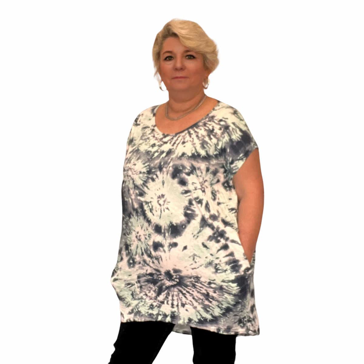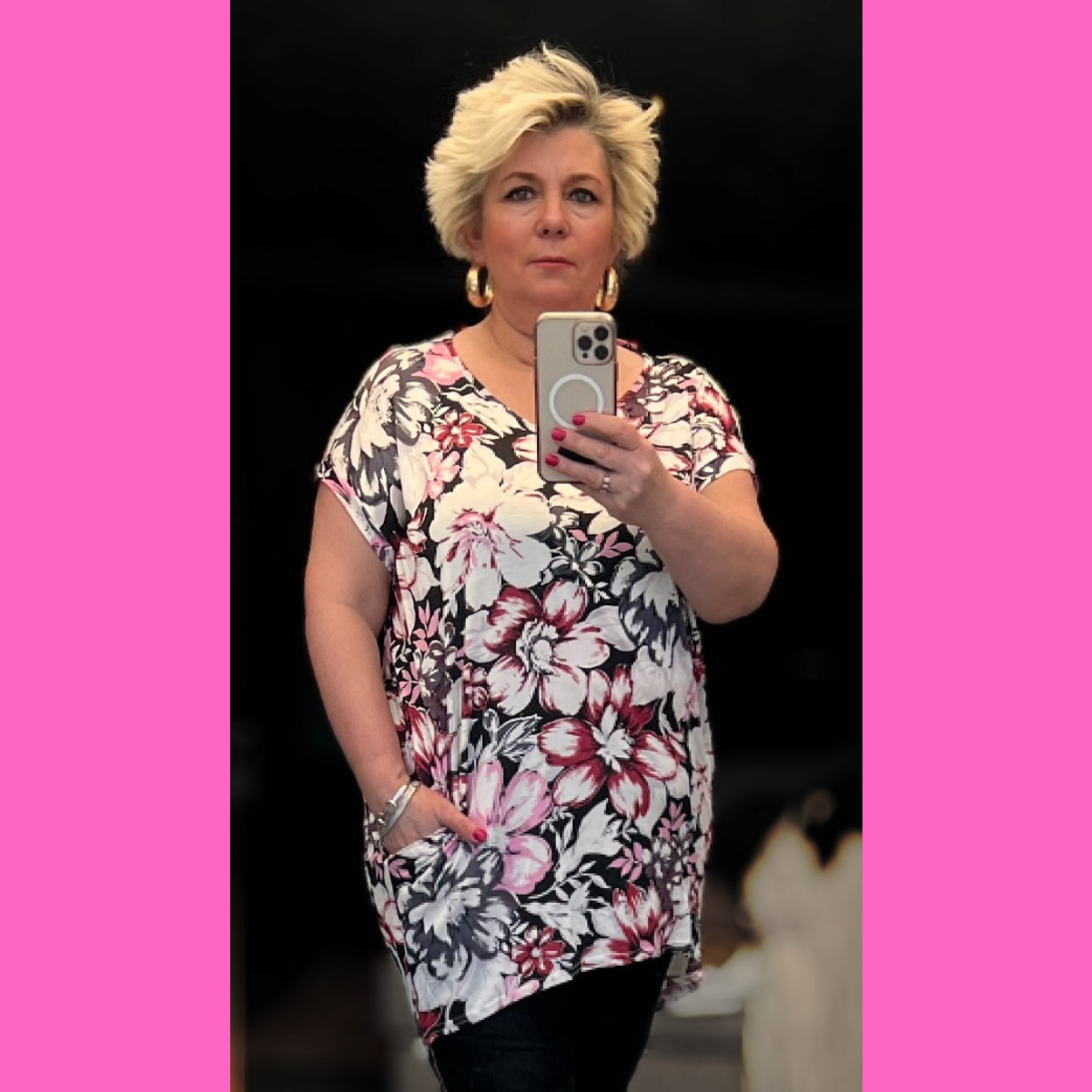DIPPED HEM CAP SLEEVE TOP / T-SHIRT WITH SIDE POCKETS