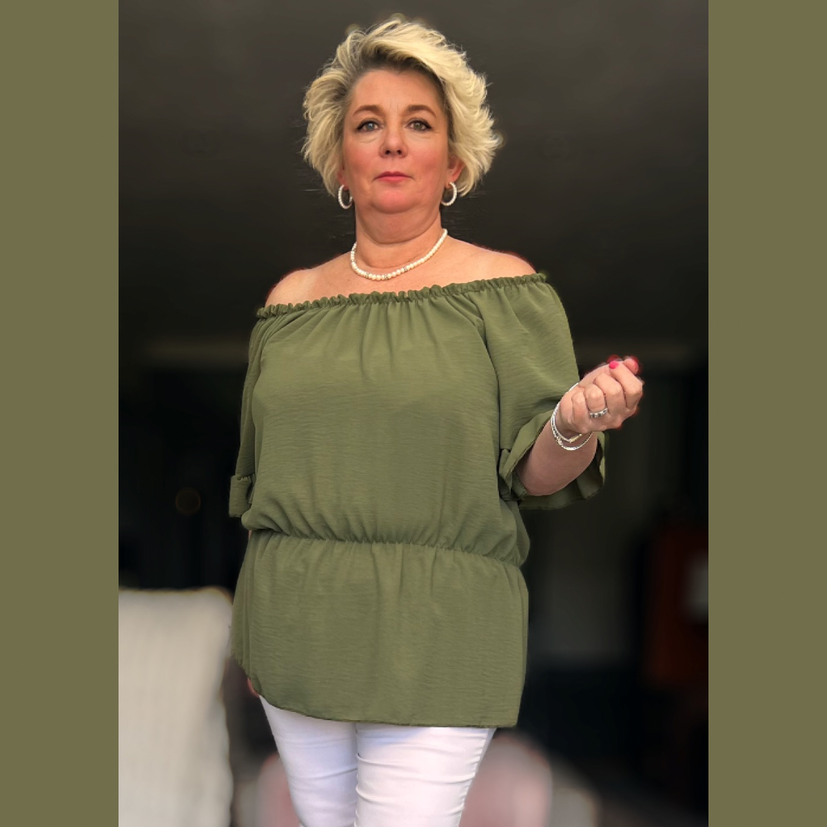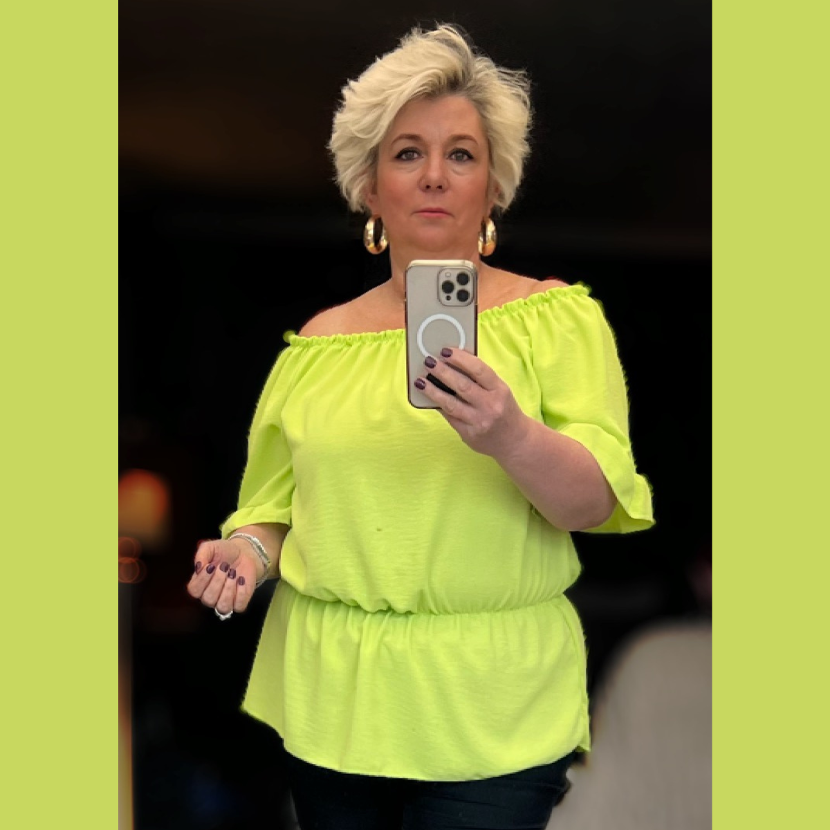 PEPLUM BRIGHTLY COLOURED OFF SHOULDER TOP BLOUSE
