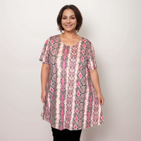 Plus‑Size Snake Print Short Sleeve Swing Top