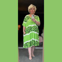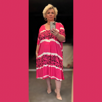 ROCKTHOSECURVES LEOPARD PANEL V NECK SWING DRESS WITH POCKETS