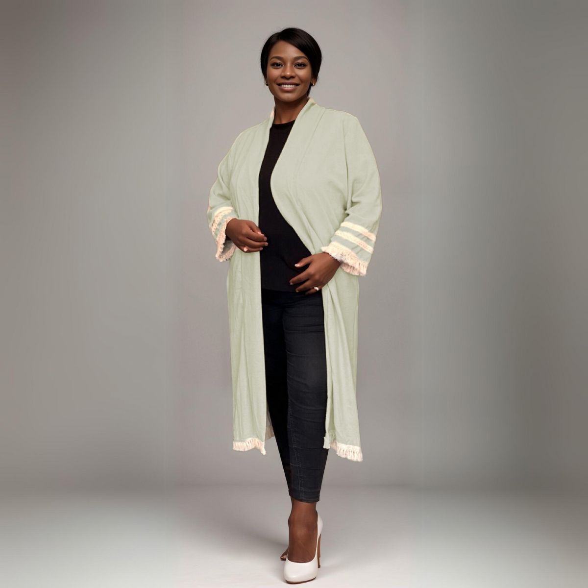 ROCKTHOSECURVES LONG DUSTER JACKET WITH TASSEL EDGING