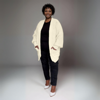 ROCKTHOSECURVES OPEN FRONT CARDIGAN WITH FRONT POCKETS - the perfect blend of comfort and style! Designed for the fashion-forward curvy woman, this cardigan features wide sleeves and convenient front pockets. Don't miss out on this must-have piece from Rockthosecurves.