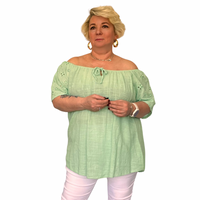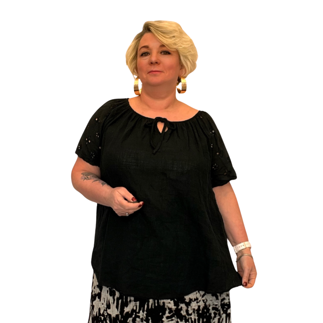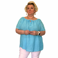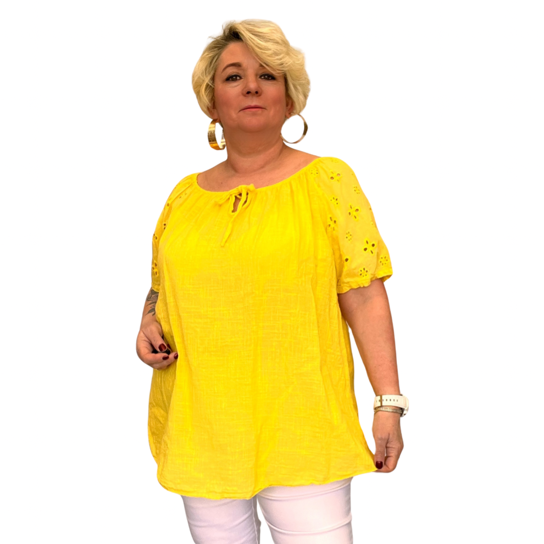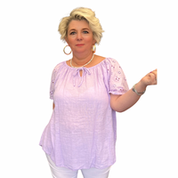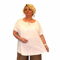 ROCKTHOSECURVES PURE COTTON A-LINE BLOUSE WITH EMBROIDERED SHORT SLEEVES