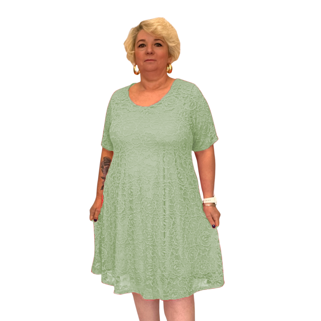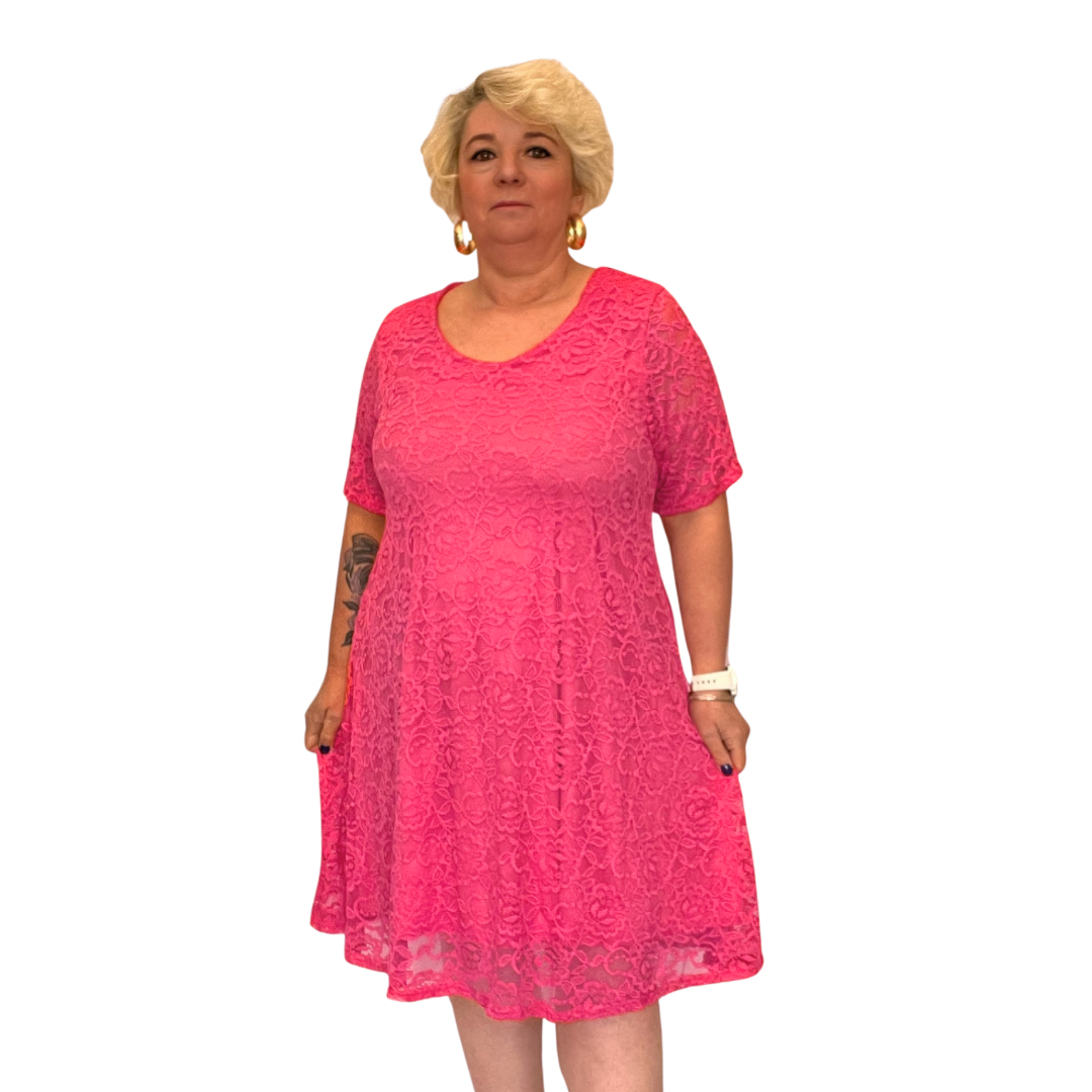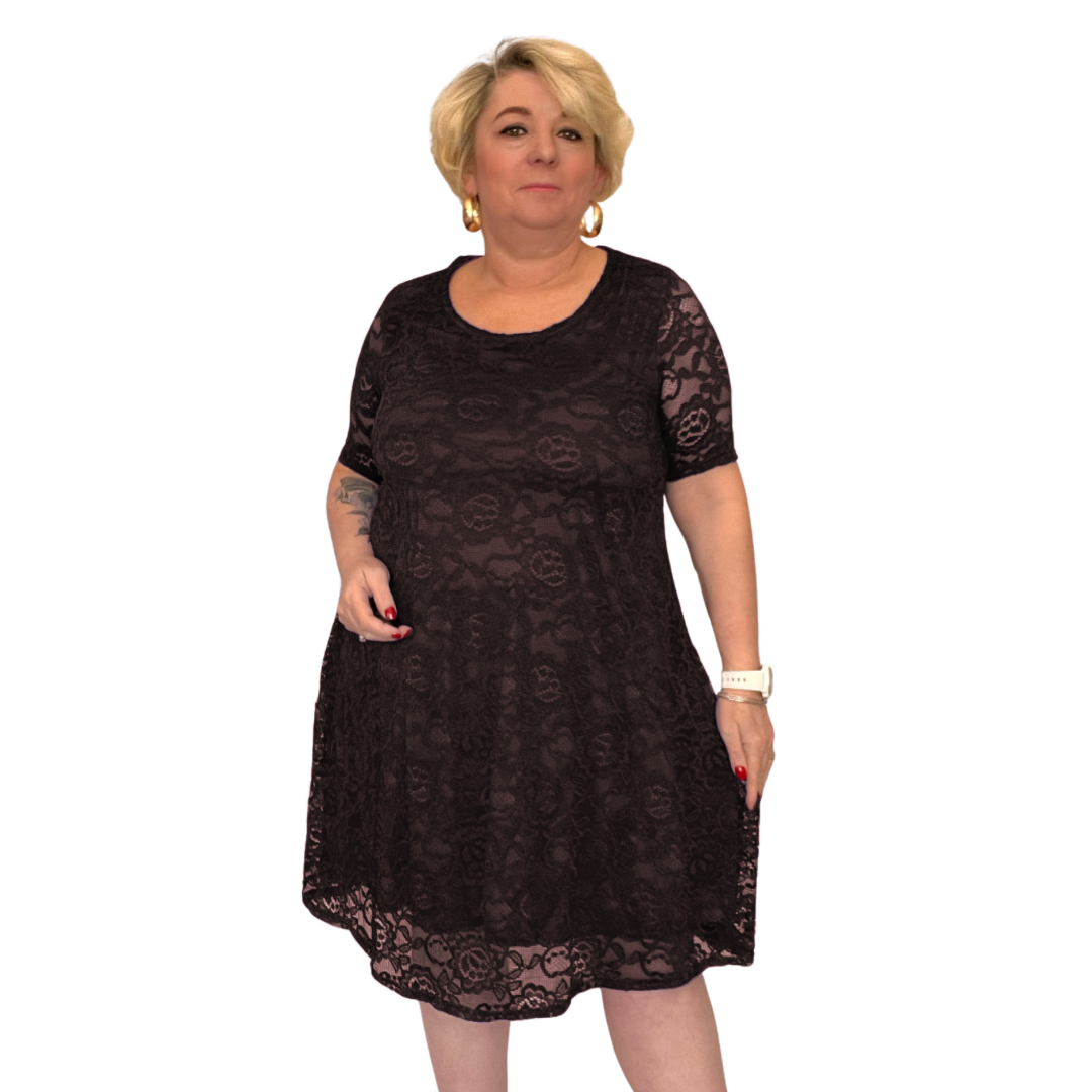 SHORT SLEEVE LACE FULLY LINED SWING DRESS