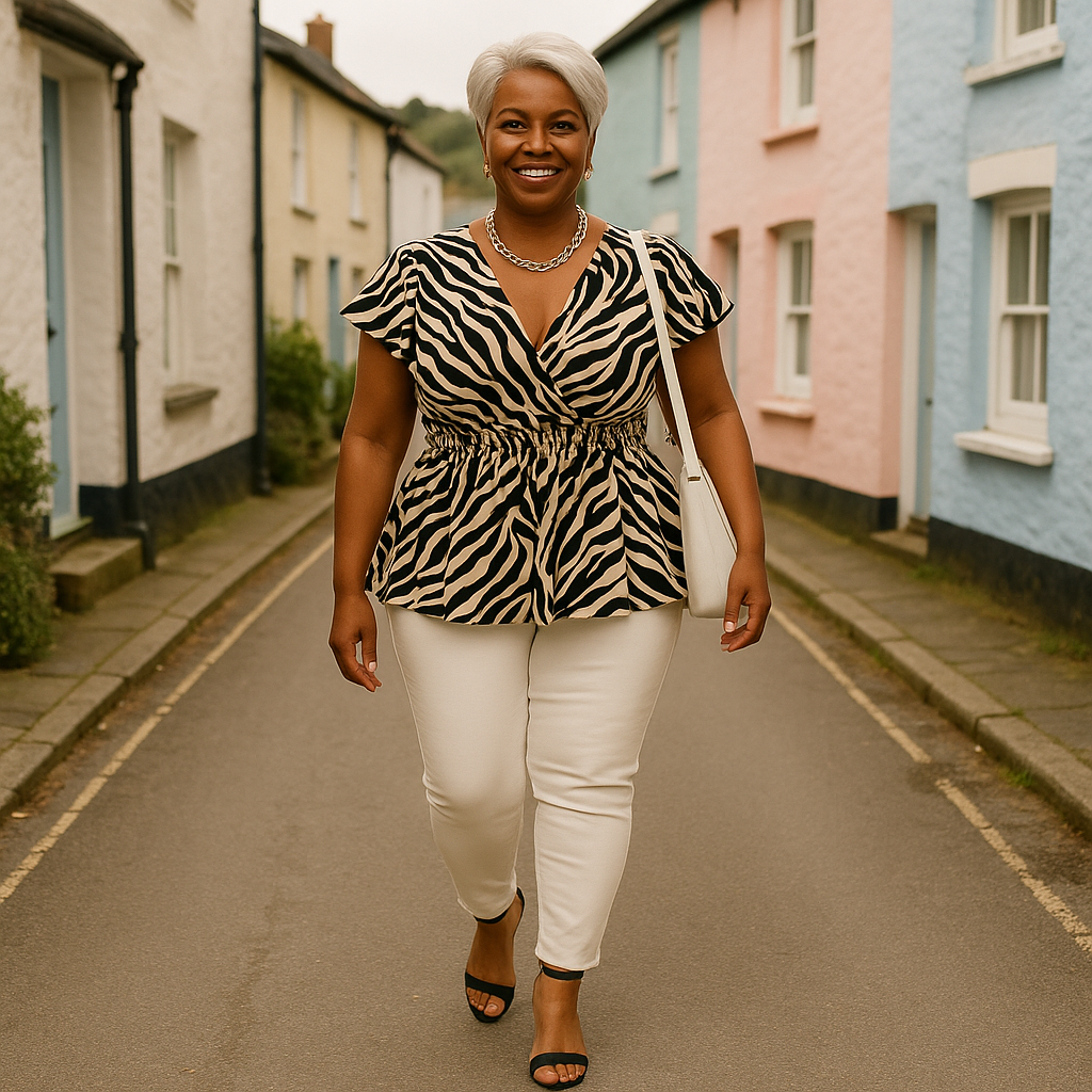 • 👗 Peplum hem – Adds flow and a feminine finish