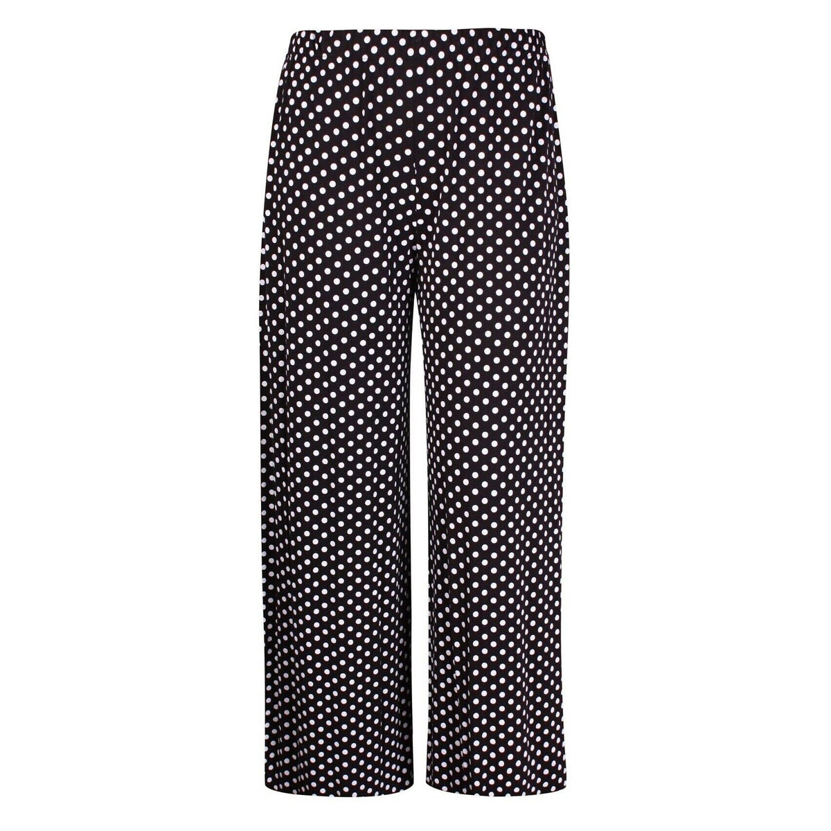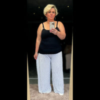 Elastic Waist Black White Polka Dot Wide Leg Palazzo Trousers Plus Size